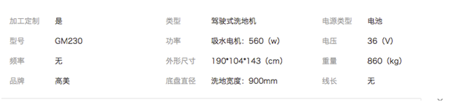 高美GM230洗地機參數:
